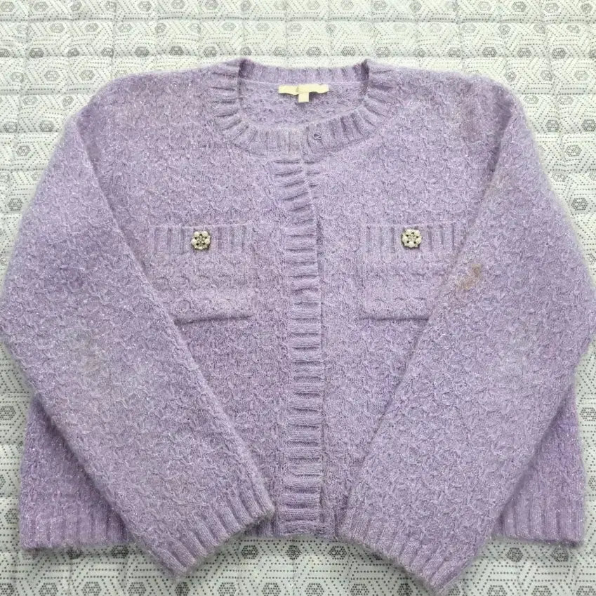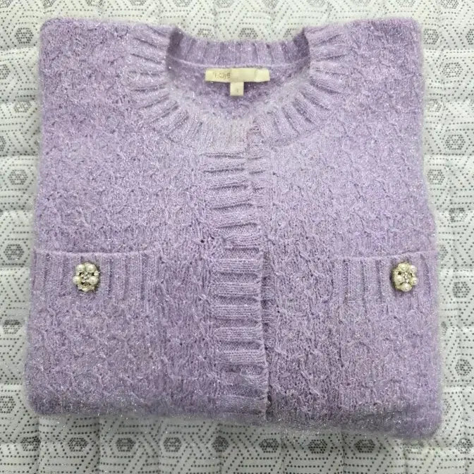 [BUNJANG] Maje Jewel Button Cardigan Purple / 마쥬 보석 단추 가디건 퍼플 ~55