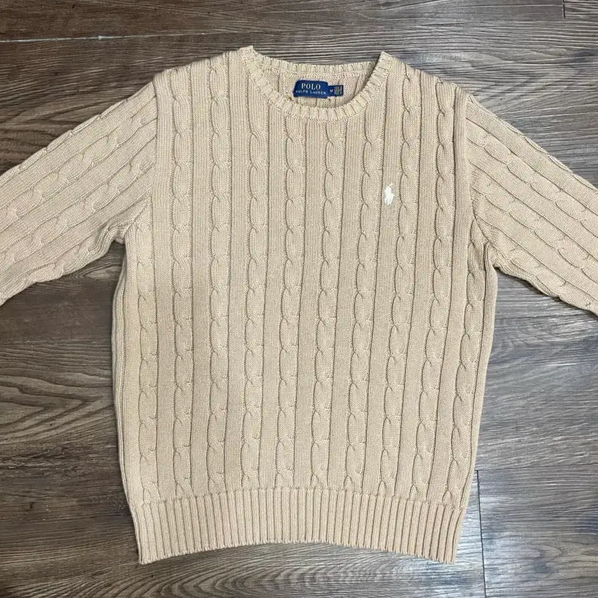 [BUNJANG] Polo Ralph Lauren White Pony Beige Cable Cotton Knit Sweater / 폴로 랄프로렌 화이트포니 베이지 케이블 코튼 니트