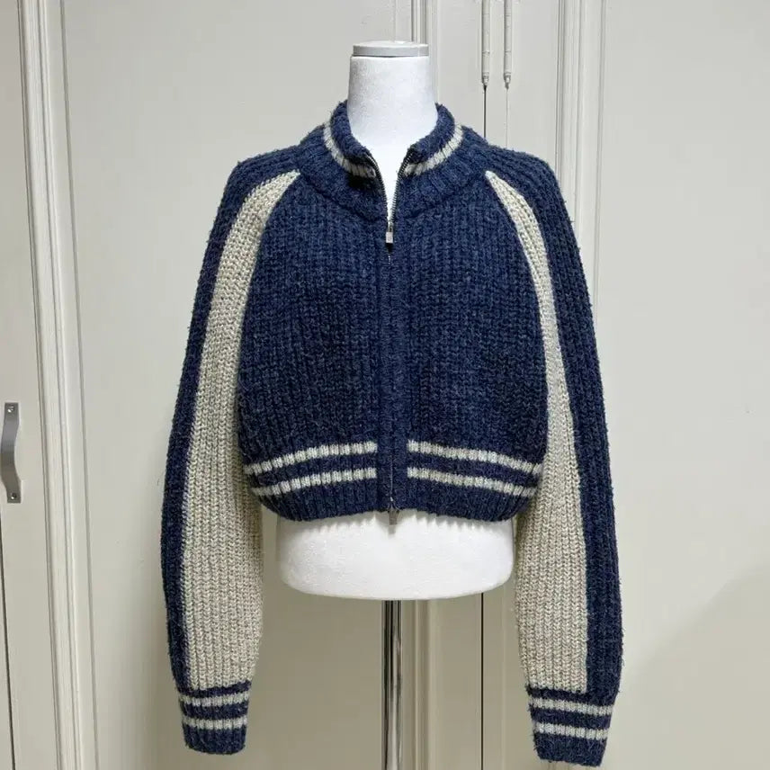 [BUNJANG] Urban Dress Raglan Color Block Zip-up Knit / 어반드레스 나그랑 배색 집업니트