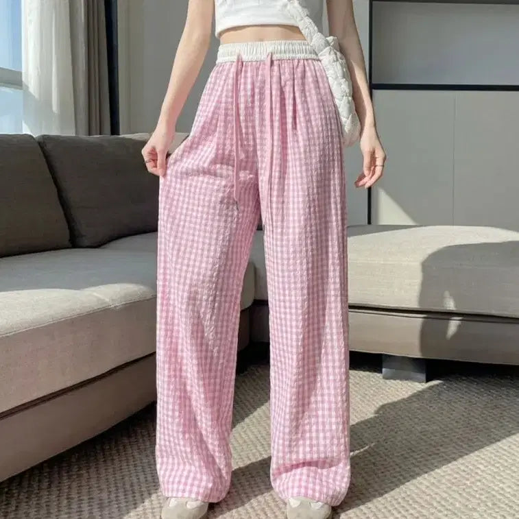 [BUNJANG] Summer Checkered Wide Leg Pants / 여자 여름 체크와이드 바지 여성바지 와이드팬츠 여름 트레이닝 바지