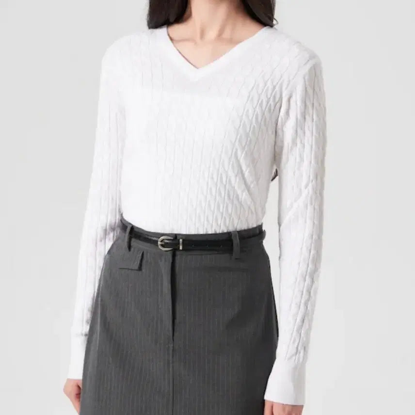 [BUNJANG] 8Seconds Women's Cable Knit Sweater Ivory / (새상품/S) 에잇세컨즈 여성 케이블 브이넥 니트 아이보리