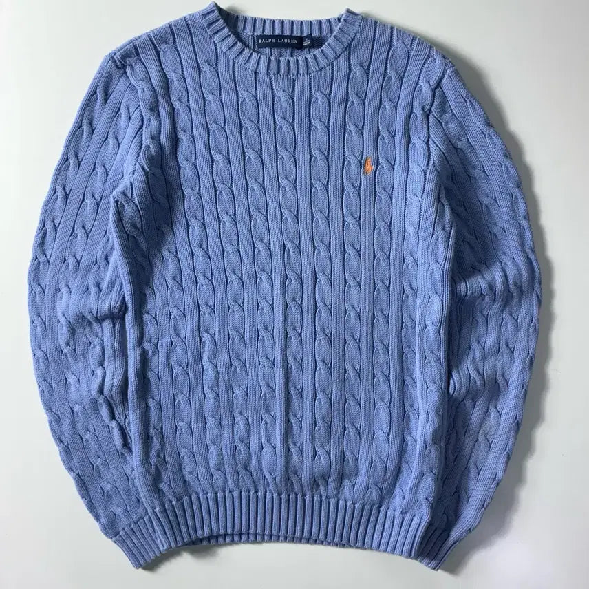 [BUNJANG] Polo Ralph Lauren Embroidered Cotton Cable Knit Sweater / Polo 랄프로렌 자수 코튼 소라 꽈배기 니트