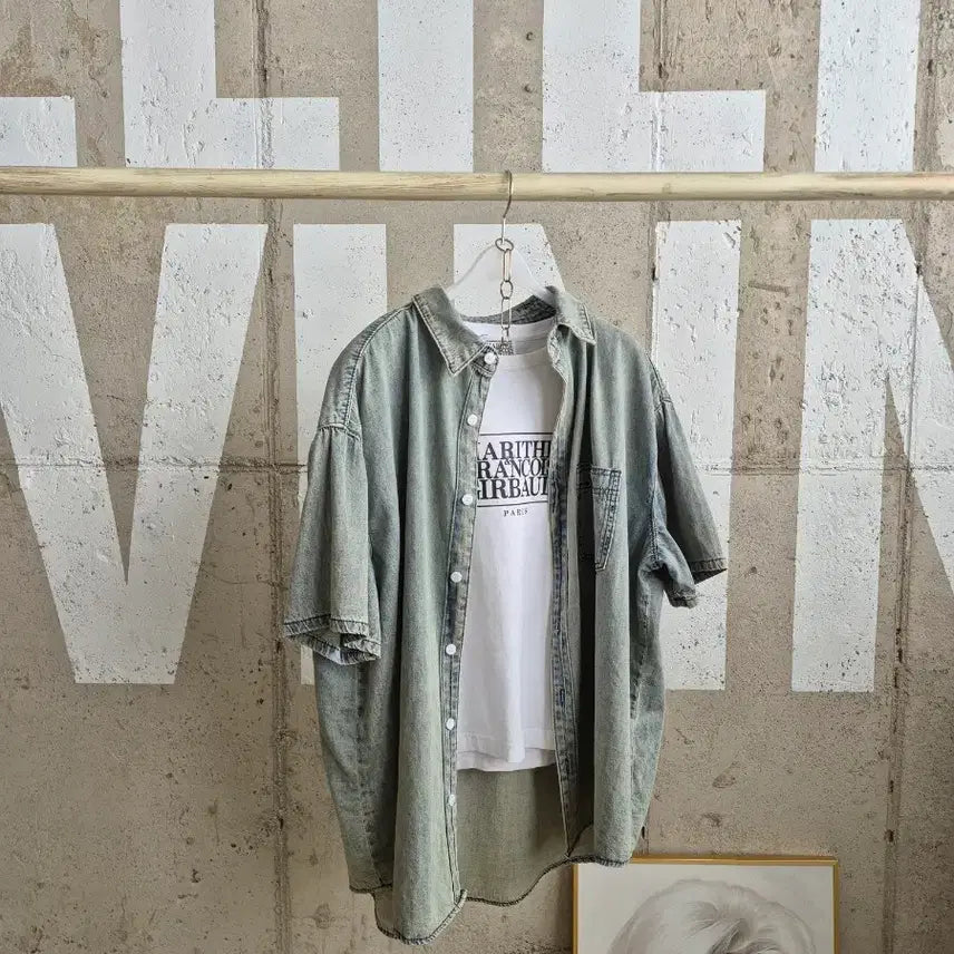 [BUNJANG] Essential Oversized Washed Denim Shirt / 에센셜 오버스럽게 반팔 워싱청셔츠
