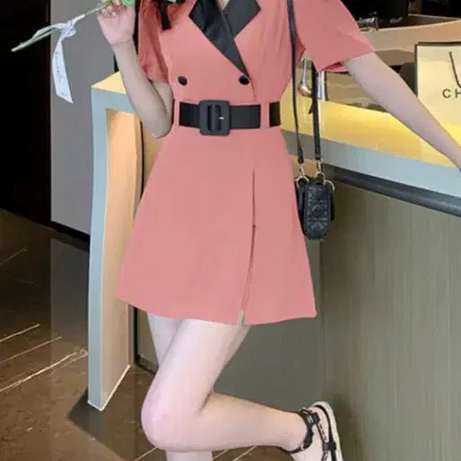 [BUNJANG] Pink Black Belted Mini Dress / 핑크 블랙 배색 벨트 미니 원피스