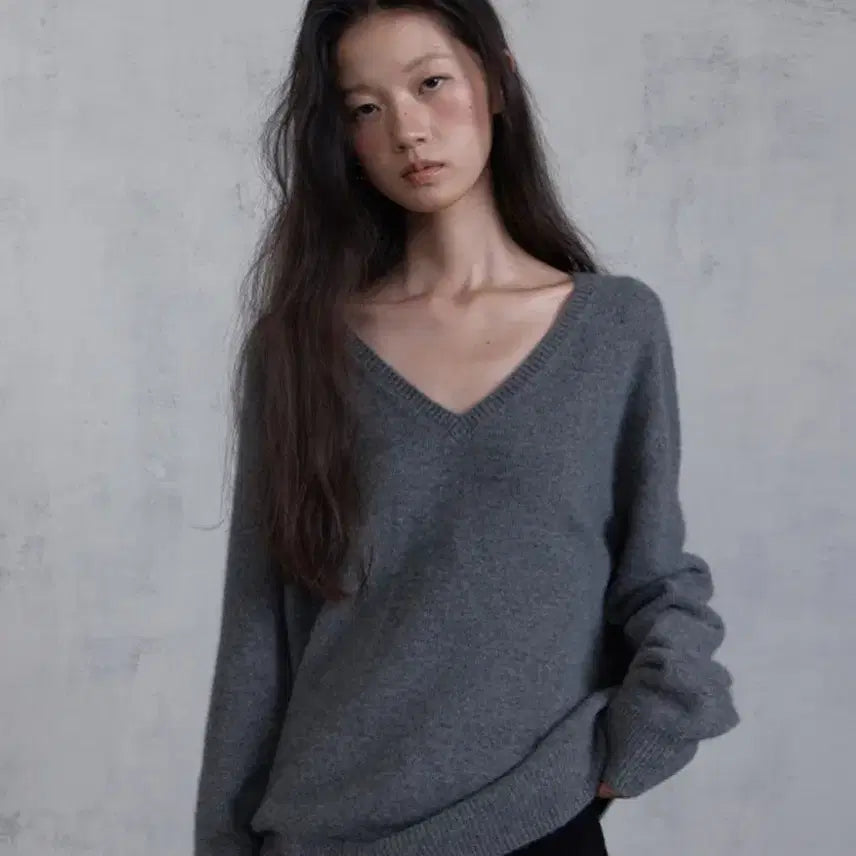 [BUNJANG] Hollie Slim Fit V-Neck Knit Ivory / [홀리] 에이블리 마켓 브이넥 슬림핏 니트 아이보리