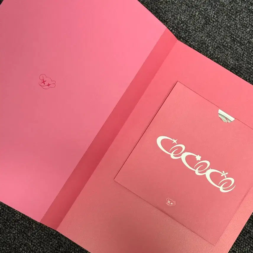 핑크색 앨범에 멤버들의 사인이 있습니다