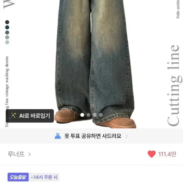 [BUNJANG] Loona Side Slit Vintage Wash Denim Pants / 루너프 사이드 절개 빈티지 워싱 벌룬 데님 팬츠