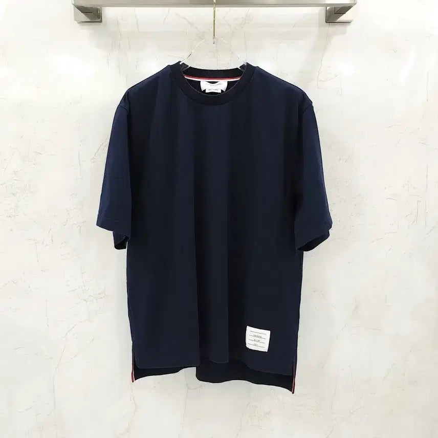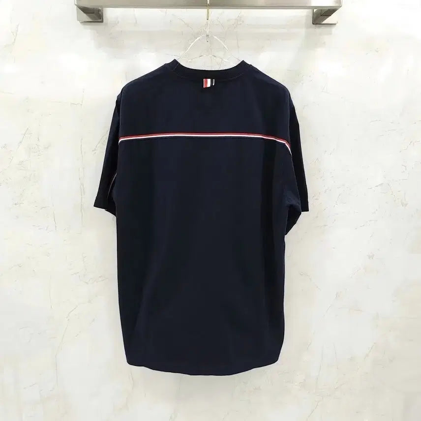 제품명 : 톰브라운 네이비 백 삼선 코튼 반팔 티셔츠