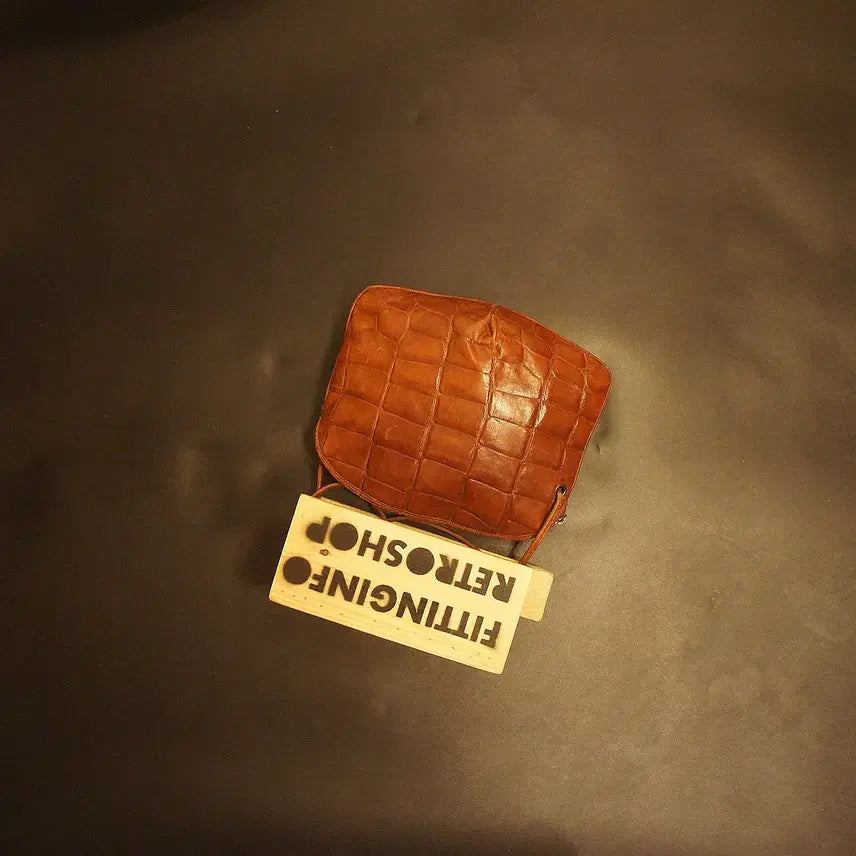 This vintage crossbody bag, crafted from leather, offers a unique aesthetic. Please note that the bag's dimensions may have slight variations. As a vintage item, it may exhibit signs of wear such as scratches, stains, or other imperfections. The leather strap is detachable, allowing it to be used as a clutch. Origin: Italy.