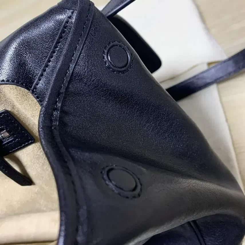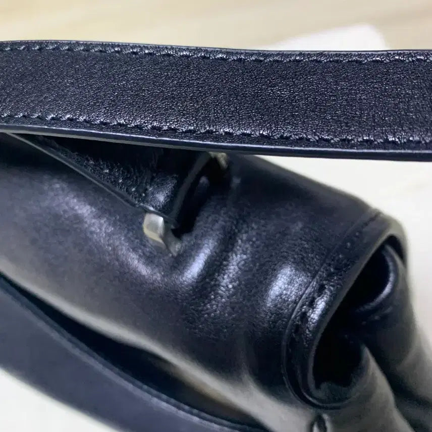 Hello, I'm selling a black Atelier de Lumen calfskin shoulder bag. It's brand new. I bought it on January 2nd, wore it a few times, and kept it clean. There are no particular defects. It's currently being sold as a new item on the Lumen official website. It's a black shoulder bag made with vegetable-tanned calfskin with added flexibility and volume. It can be worn crossbody or shoulder with the adjustable strap. Please inquire as there are no refunds.