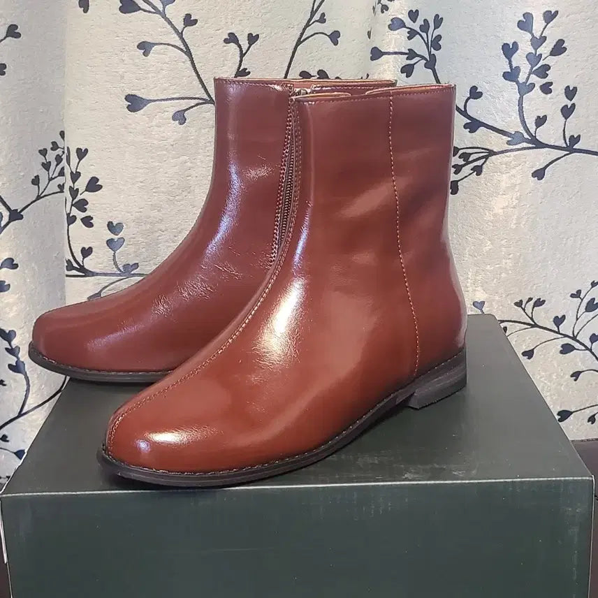 브라운 색이고, 안쪽에 털이 있어 따뜻합니다 옆지퍼가있어 신고벗기 편리하며 박스에 담겨 있습니다