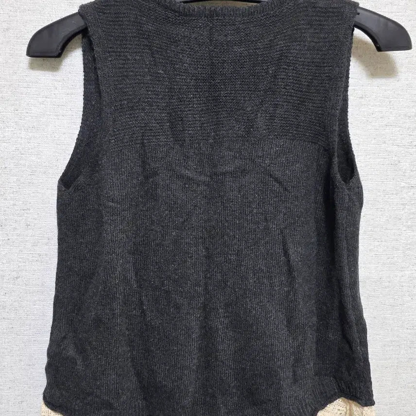 블랙 색상의 니트 조끼입니다. 귀여운 레이스 디테일이 있어 포인트로 입기 좋아요. 브이넥 디자인으로 답답하지 않게 착용 가능합니다. 별도 문의 없으시면 바로 안전결제 부탁드려요!