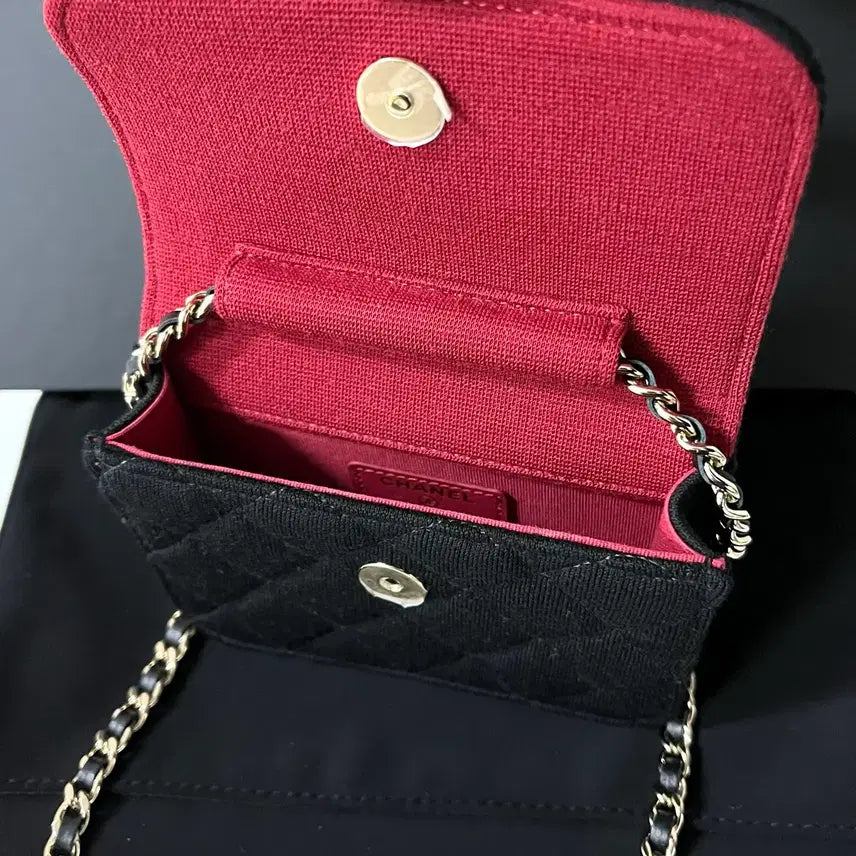 [BUNJANG] Chanel Fabric Mini Black Chain Crossbody Bag / [미사용/정품] 샤넬 패브릭 미니 블랙 체인 크로스백 가방