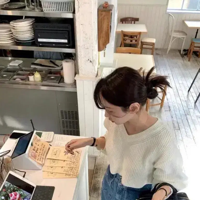 드하우 콩브이넥 니트입니다. 크롭 기장이라서 다리가 길어보이는 효과가 있어요. 흰색이라 어느 옷에나 잘 어울립니다. 문의 없으시면 바로 안전결제해주시면 됩니다!