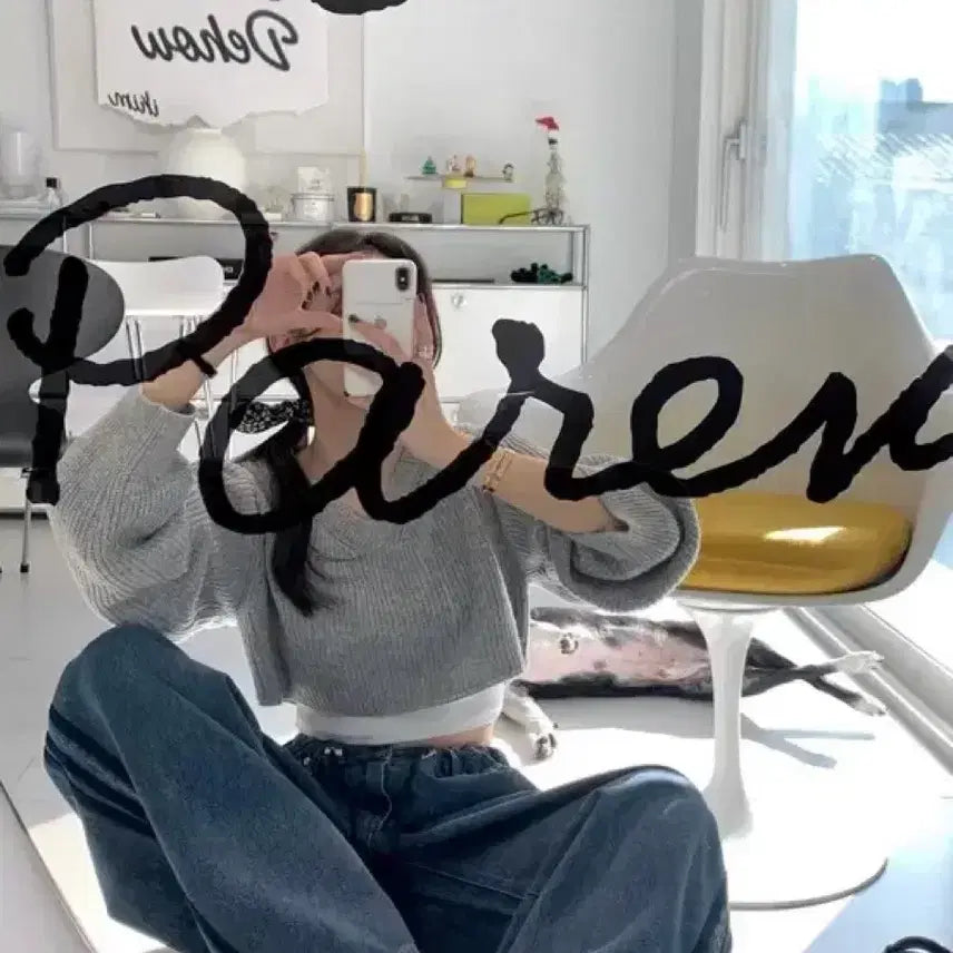 Brand new Dehau crop V-neck knit sweater available in gray/ivory. Purchased for around 50,000 KRW. This high-quality cropped knitwear is designed to elongate your legs. The white color makes it versatile and easy to match with any outfit.