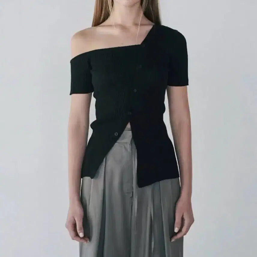 [BUNJANG] Diagonal Off-Shoulder Knit Top / 다이애그널 오프숄더니트 오프숄더반팔