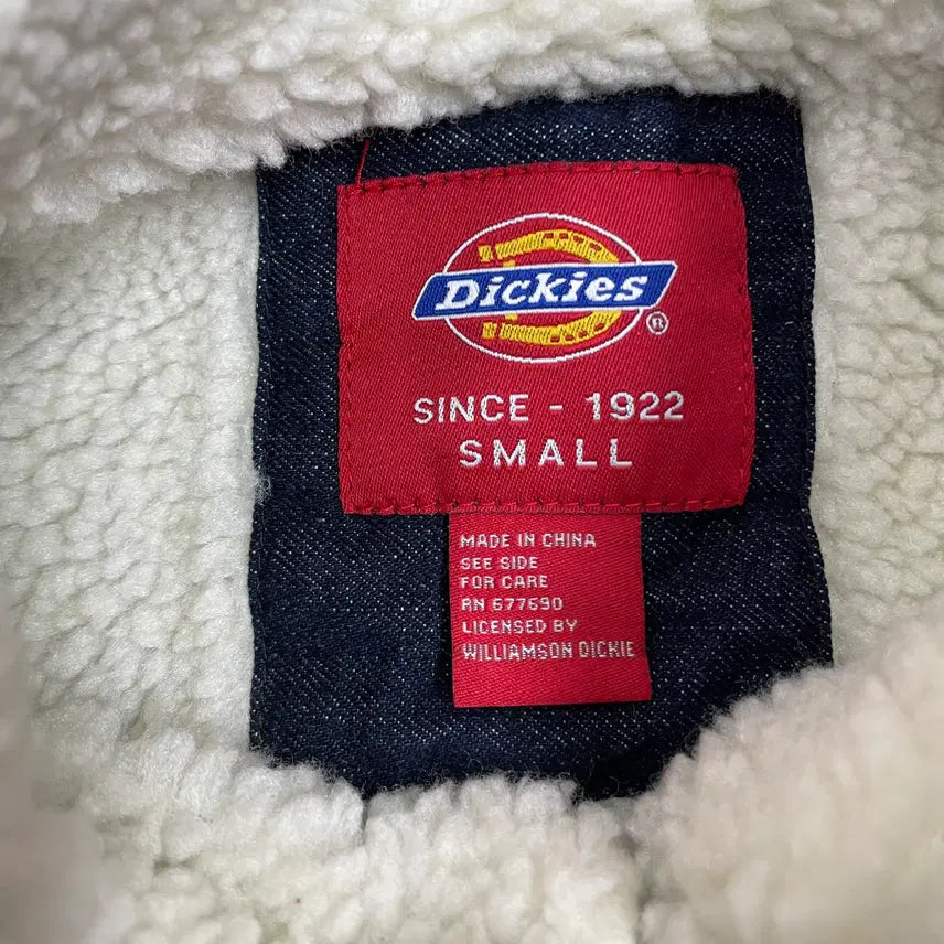 This vintage Dickies denim jacket features a fleece lining for added warmth. Please refer to the photos for detailed measurements.