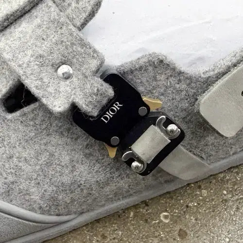Dior x Birkenstock Tokio Mule. Crafted with gray felt wool and nubuck calfskin straps. Features the iconic CD aluminum buckle. Item is in good condition with signs of wear. Shoes only, no original packaging. Recommended size: 280mm.