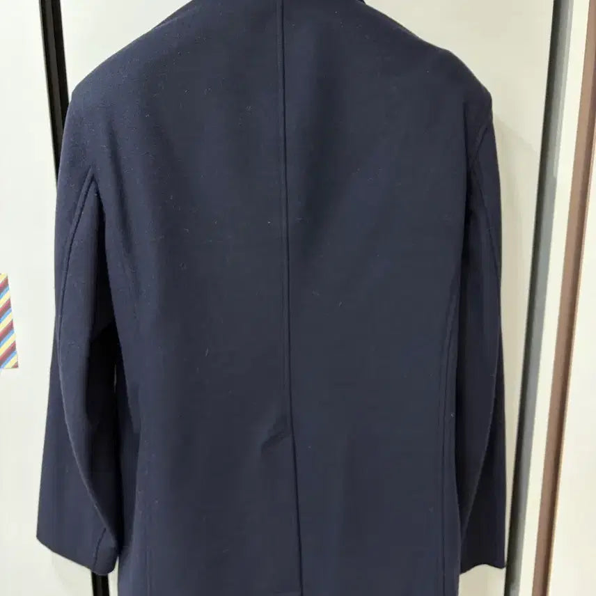 네이비 색상으로 울 70%, 캐시미어 20%, 나일론 10% 혼방 소재로 제작되어 부드럽고 따뜻합니다.
