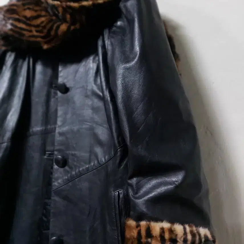 [BUNJANG] ELIZABETH DAY Italian Leather Leopard Fur Coat / ELIZABETH DAY 이태리 레더 블랙 호피퍼 코트