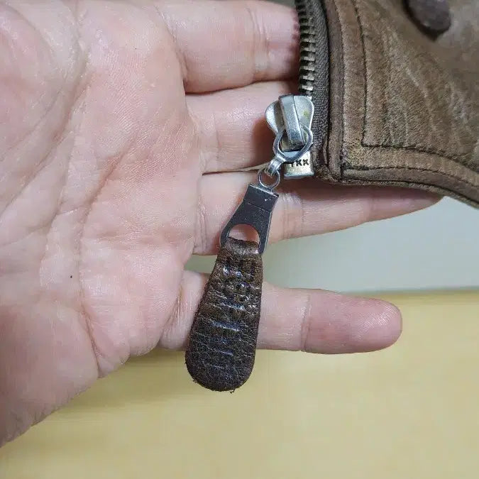 에스프리 90년대 빈티지 가죽 조끼입니다. 세월감이 느껴지는 브라운 컬러가 멋스러워요. 앞면 지퍼 디테일과 포켓 디테일까지 완벽합니다.