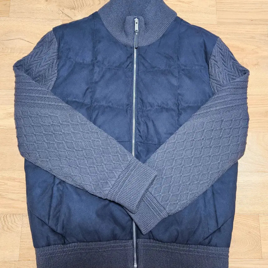 [BUNJANG] Fahrenheit Knit Suede Down Jacket Dark Navy 110 / 파렌하이트 니트 스웨이드 다운 점퍼 다크 네이비 110