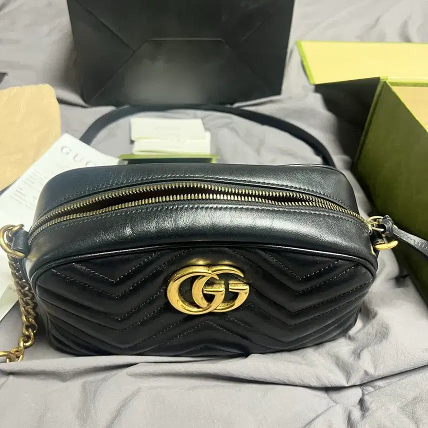 [BUNJANG] Gucci GG Marmont Small Matelassé Camera Bag / 구찌 GG 마몽 스몰 마틀라세 카메라백 블랙 / 풀구성