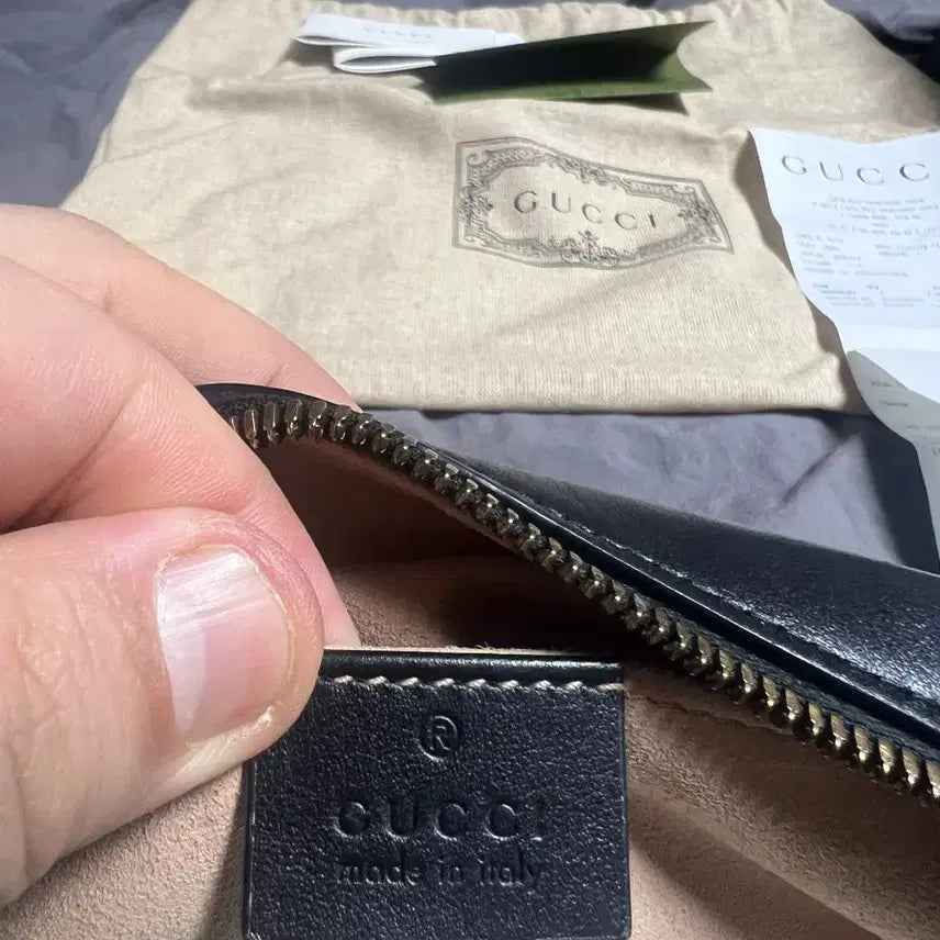 The Gucci GG Marmont Small Camera Bag in black, purchased from the Lotte Department Store main branch. Comes with a full set including the original receipt.