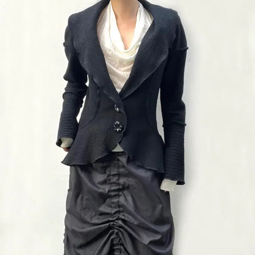 입체적인 비대칭 러플 디테일로 무드있는 실루엣