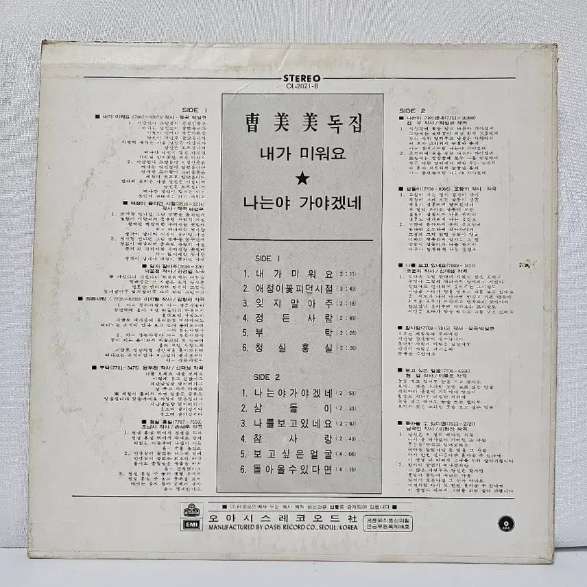 조미미 LP음반 "내가 미워요" 앨범입니다.