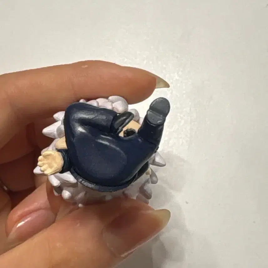 This Gojo Satoru figure from Jujutsu Kaisen has minor imperfections, including a tiny scratch and some dust-like marks on the hair.
