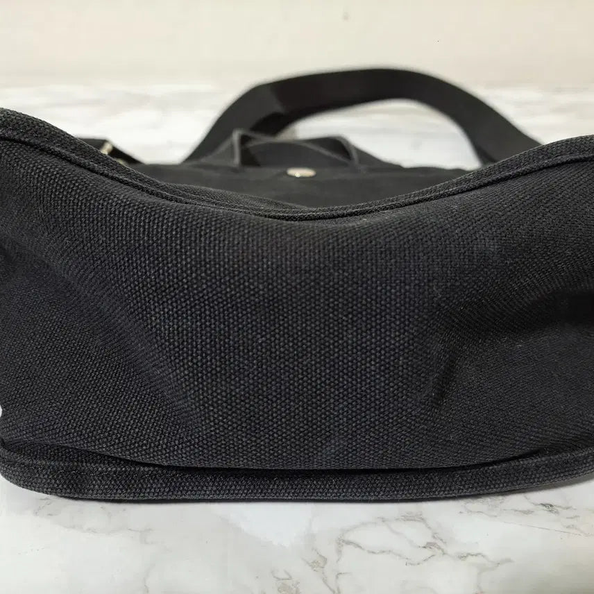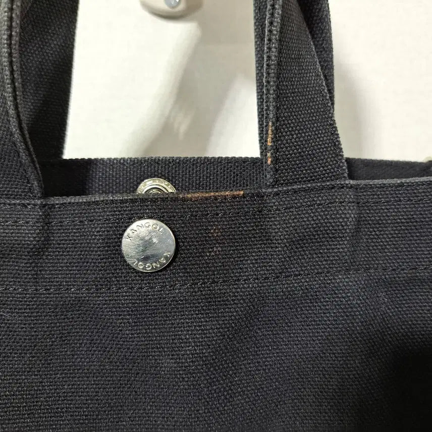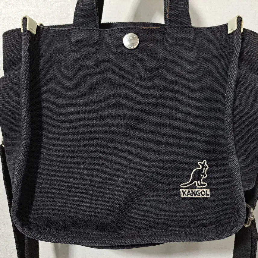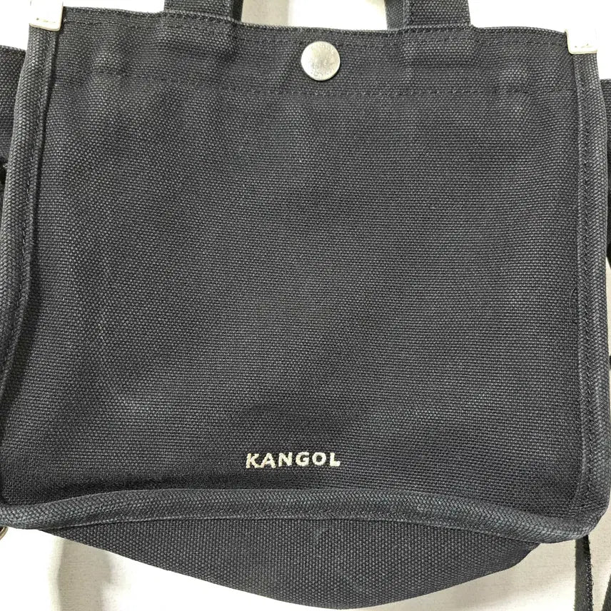 This Kangol women's mini crossbody bag shows signs of wear and tear, especially on the handles and the opening. Despite the wear, there are no rips or holes. It's made of a thick cotton canvas material. The bag is quite small, with dimensions of 20cm in width, 20cm in height, and 10cm in depth. Please note that this is a used item, and returns or exchanges are not accepted.