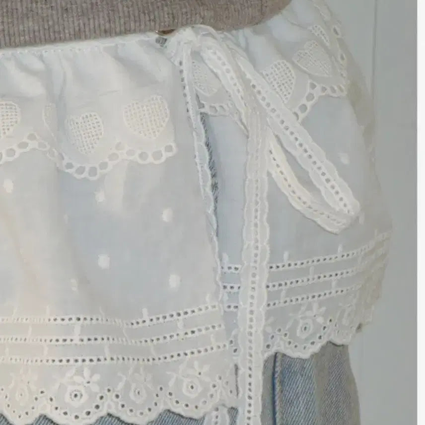 This belt from 론론 features a white lace design. It's a great item to add a point to your plain bottoms. Upgrade your style with its unique layered design!
