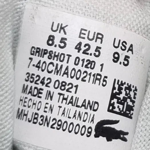 The Lacoste Gripshot men's sneakers in size 275. Featuring a versatile white color that complements any outfit. The green heel detail adds a touch of style.