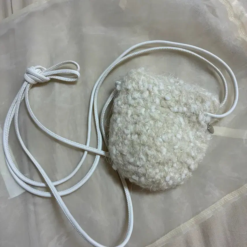 The Le Vingt Sept Mini Moso Crossbody Bag in ivory. Made of a fluffy material for a cute look. Selling at a low price due to having too many bags!
