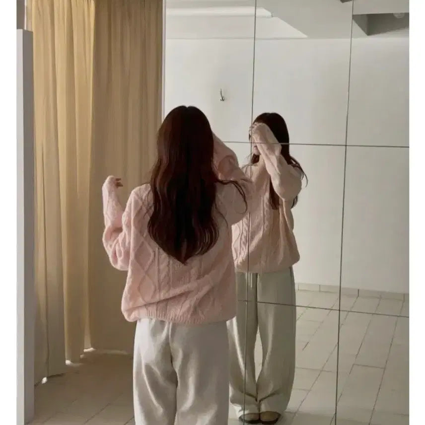 [BUNJANG] Libre Boat Neck Fisherman Cable Knit Sweater - Pink / [리브레] 보트넥 피셔맨 꽈배기 니트 : 핑크