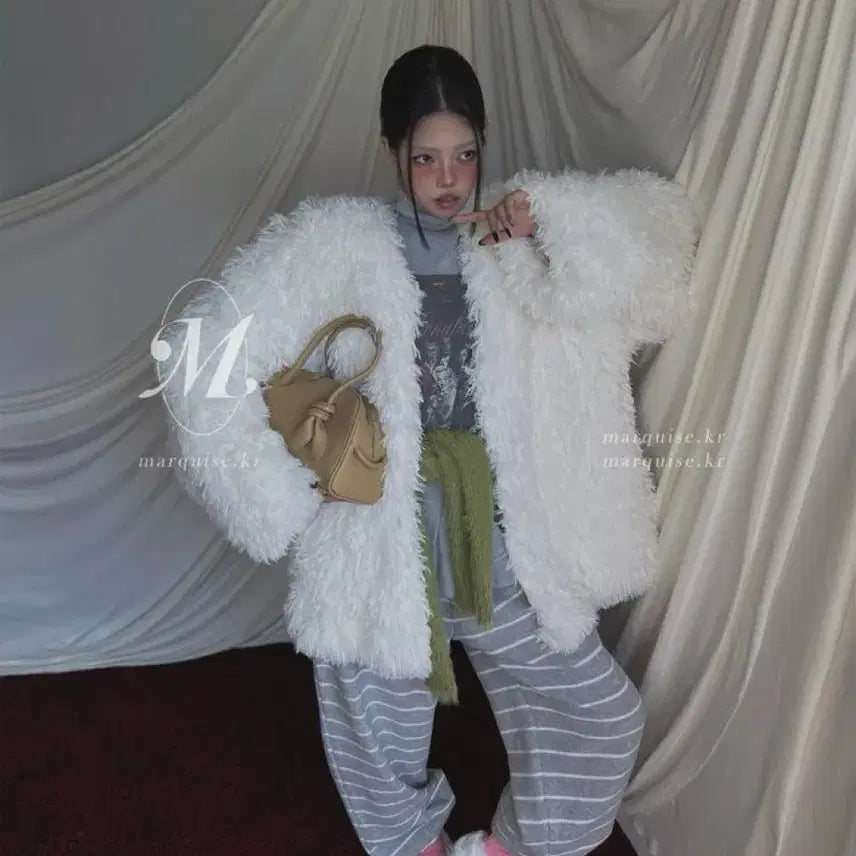 This is a Marquise white fur jacket. Its fluffy, bouclé-like texture stands out. Its unique design makes it a great accent piece. If you have no questions, you can simply pay securely!
