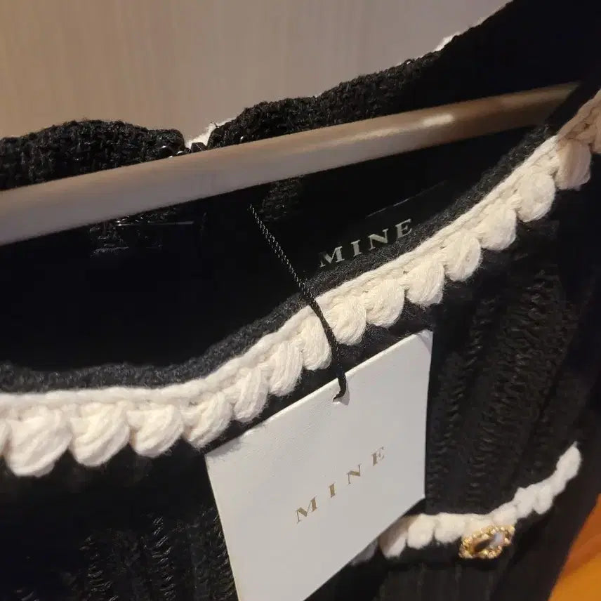 A tweed dress from the Korean brand MINE. Size 66, crafted from black tweed material. The dress design exudes luxury, with a Chanel-esque feel. Suitable for wearing as a single piece or paired with a blouse.
