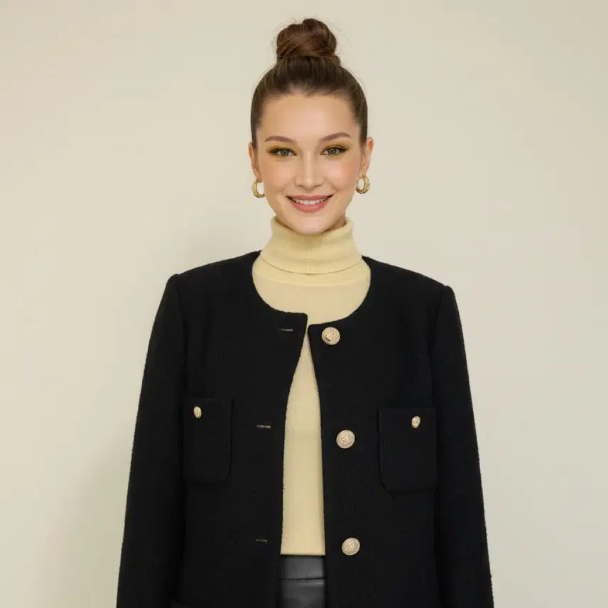 • Color: Clean black with luxurious gold buttons