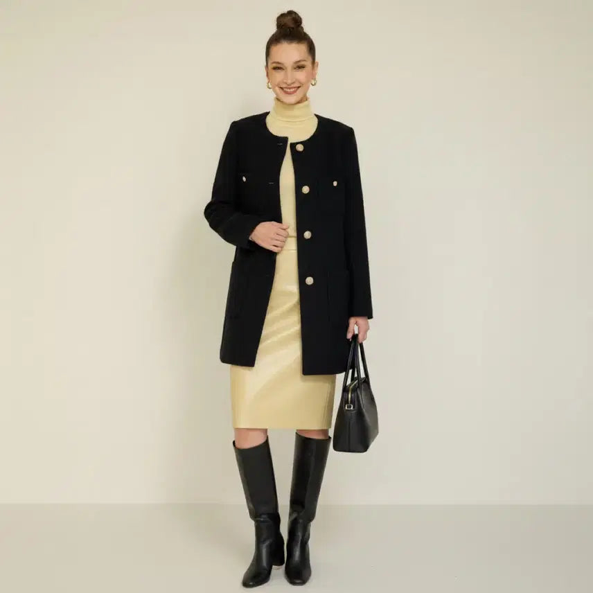 • The half-coat length slightly covers the hips, making it perfect for framing your figure.