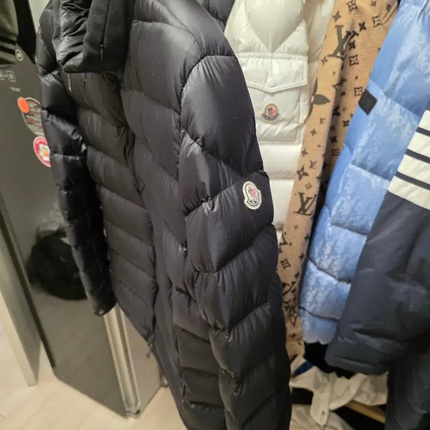 Men's Moncler padded jacket with a zippered hood on the neck for versatile wear. Purchased approximately 5-6 years ago from Lotte Department Store in Seomyeon for around 2,000,000 KRW. The size is similar to Moncler Maya padding size 5. It's lightweight and warm. Selling due to size change. Worn 1-2 times.