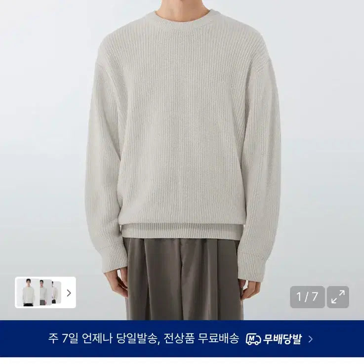 무신사 스탠다드 크림색 니트입니다. 코튼 리브드 소재로 되어있고, 맨살에 입어도 부드러운 촉감입니다. 깔끔한 크루넥 디자인으로 어떤 스타일에도 잘 어울립니다. 별도 문의 없으시면 바로 안전결제 부탁드려요!
