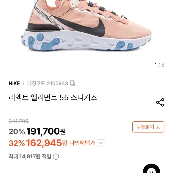 정가 16만원인 나이키 엘리먼트55 스니커즈 250사이즈입니다. 은은한 핑크색이 매력적인 신발입니다.