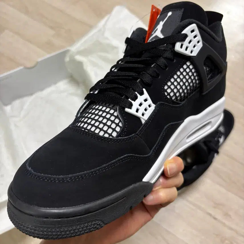 Brand new Nike Jordan 4 White Thunder sneakers in size 300. These shoes are authentic with the original Nike tag. The black and white design is simple and versatile, suitable for various outfits.