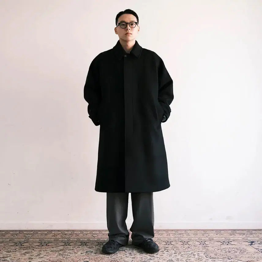 여유로운 실루엣이 특징인 발마칸 코트