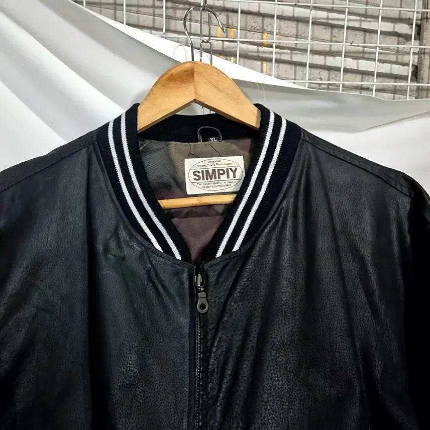 [BUNJANG] Simpiy Minimal Leather Varsity Jacket / Simpiy 미니멀 가죽 바시티 자켓