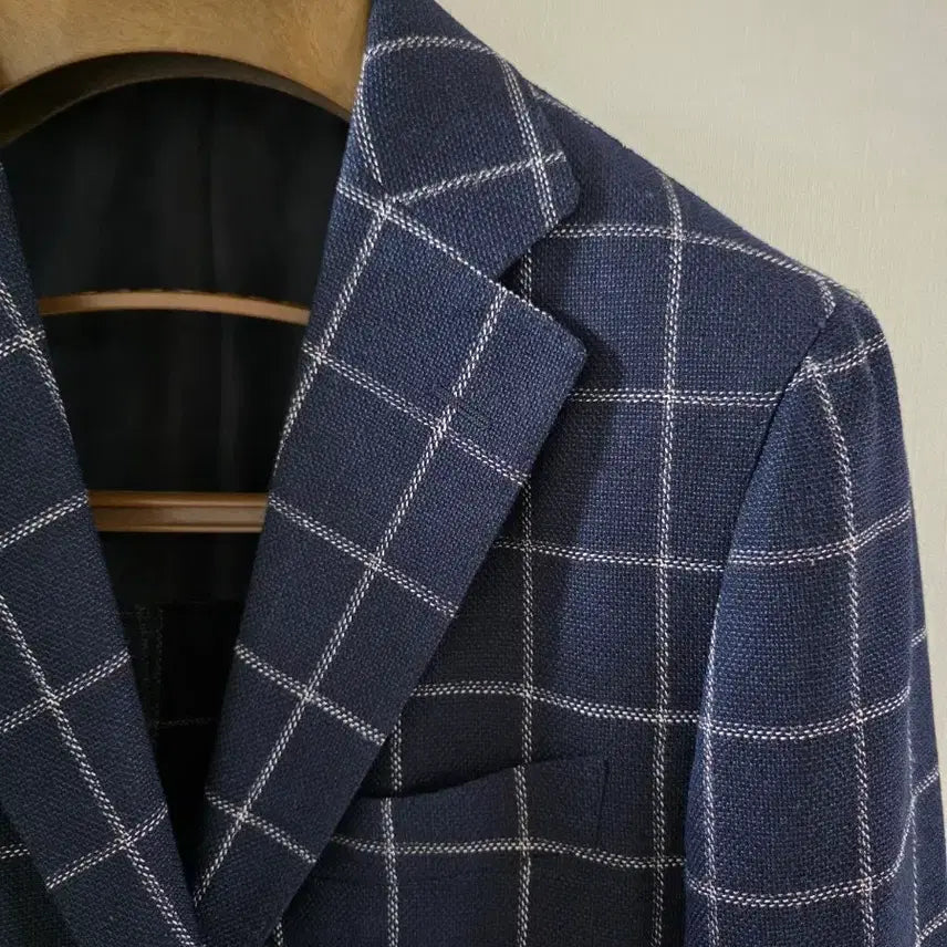 [BUNJANG] Sovereign Dark Navy Wool Linen Hopsack Check Sport Coat / 소버린 다크네이비 울린넨 홉색 체크 스포츠코트