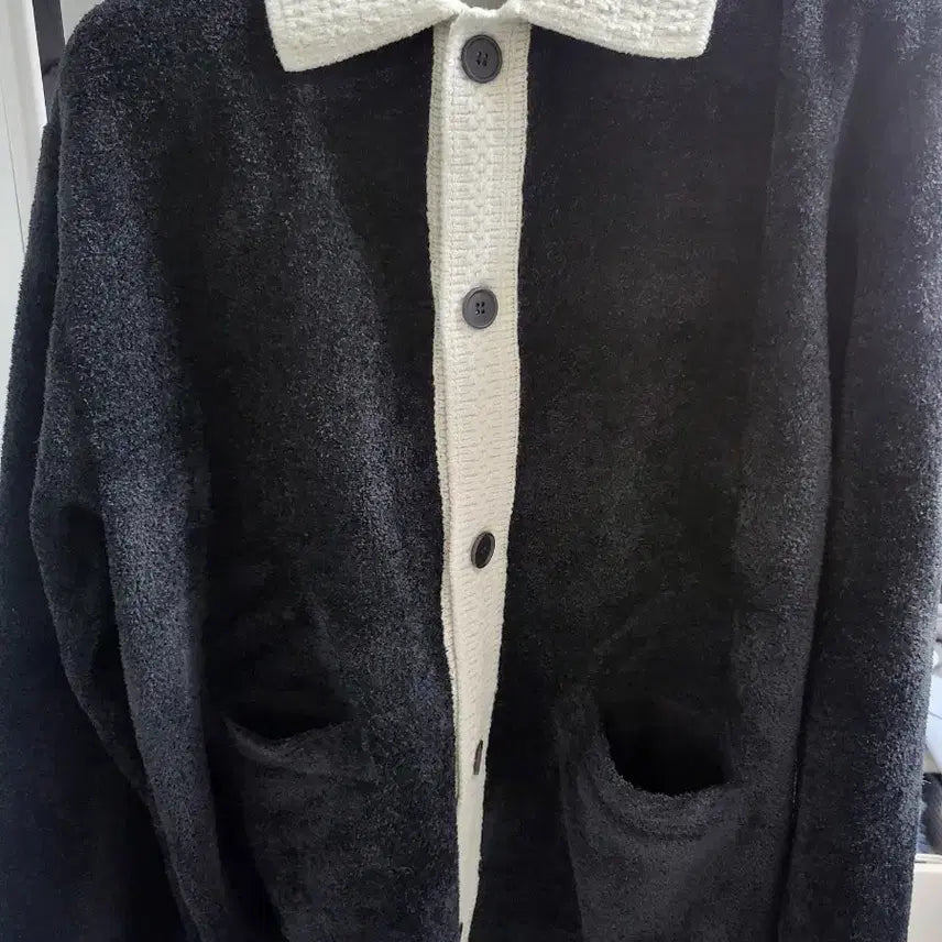 [SOLD OUT] 26SS 시스템옴므 콘트라스트 칼라 니트 가디건 블랙 새상품 팝니다.