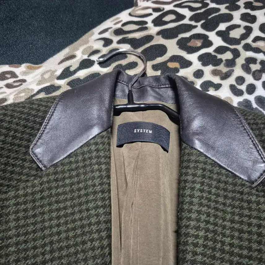 [BUNJANG] System Leather Collar Wool Check Coat / 한섬 시스템 레더 카라 울 체크 코트 m 정품