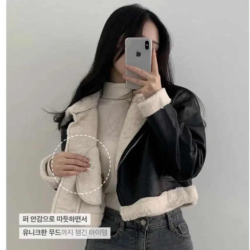[BUNJANG] The Pink Crop Leather Jacket / 지그재그 에이블리 더핑크 크롭 레더자켓 무스탕